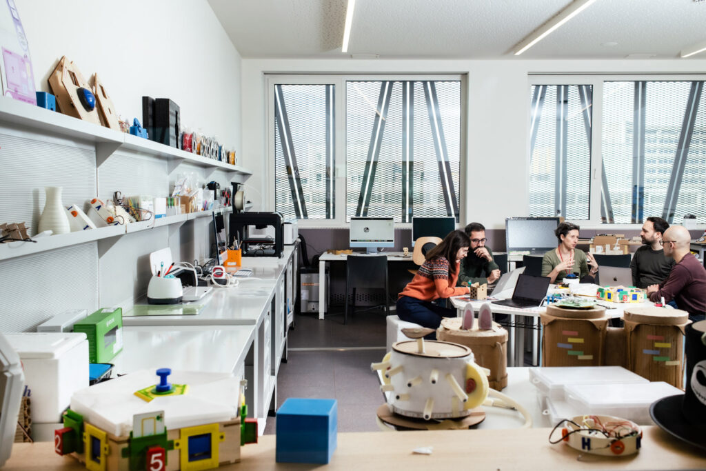 To work on research projects, the lab has different prototyping tools, e.g., easy-to-use fabrication machines and embeddable and wearable computing devices. Thanks to its tools, the passion and expertise of its members, the lab allows for the rapid iteration and validation of research ideas as physical and digital solutions for and with users before moving on to more complex systems.